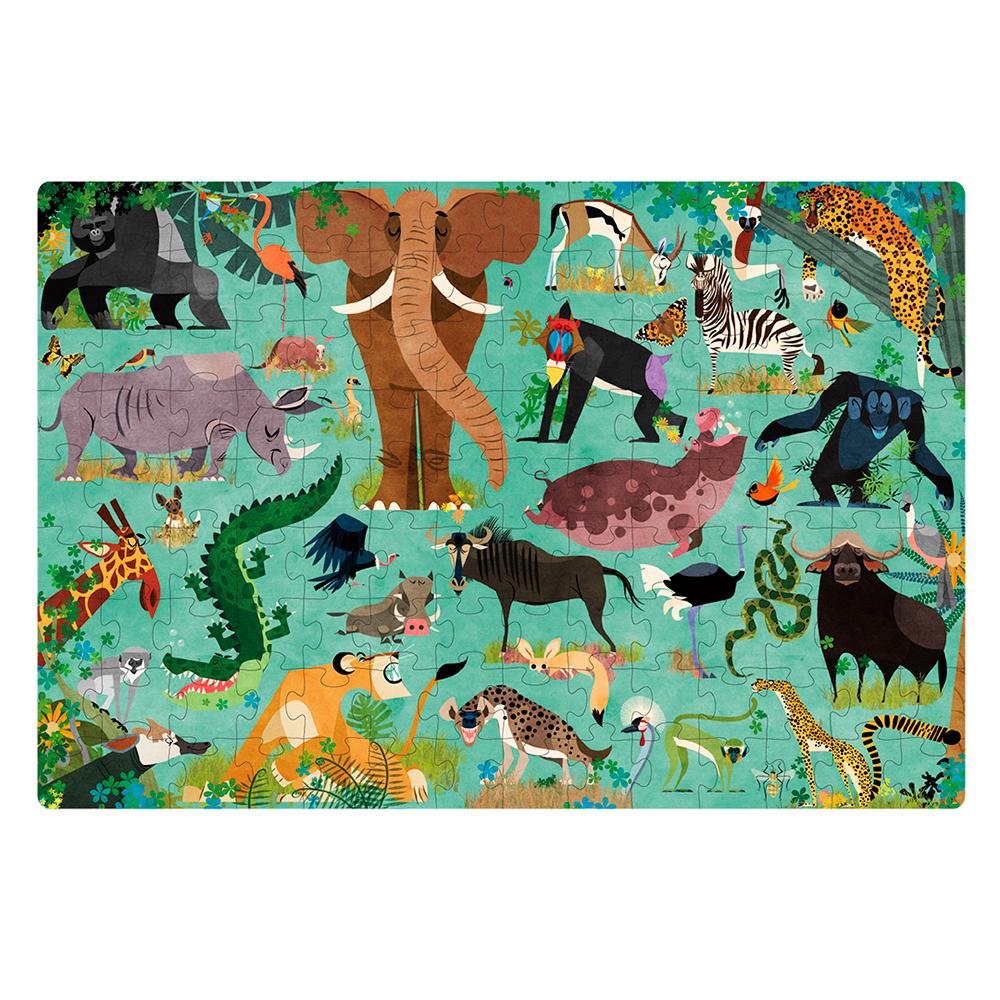 Descubre un paisaje salvaje lleno de vida, ¡hay animales por todas partes! Pieza a pieza, irás descubriendo los animales que se ocultan en esta escena, a cada cual más exótico, ¿sabrías nombrarlos a todos?