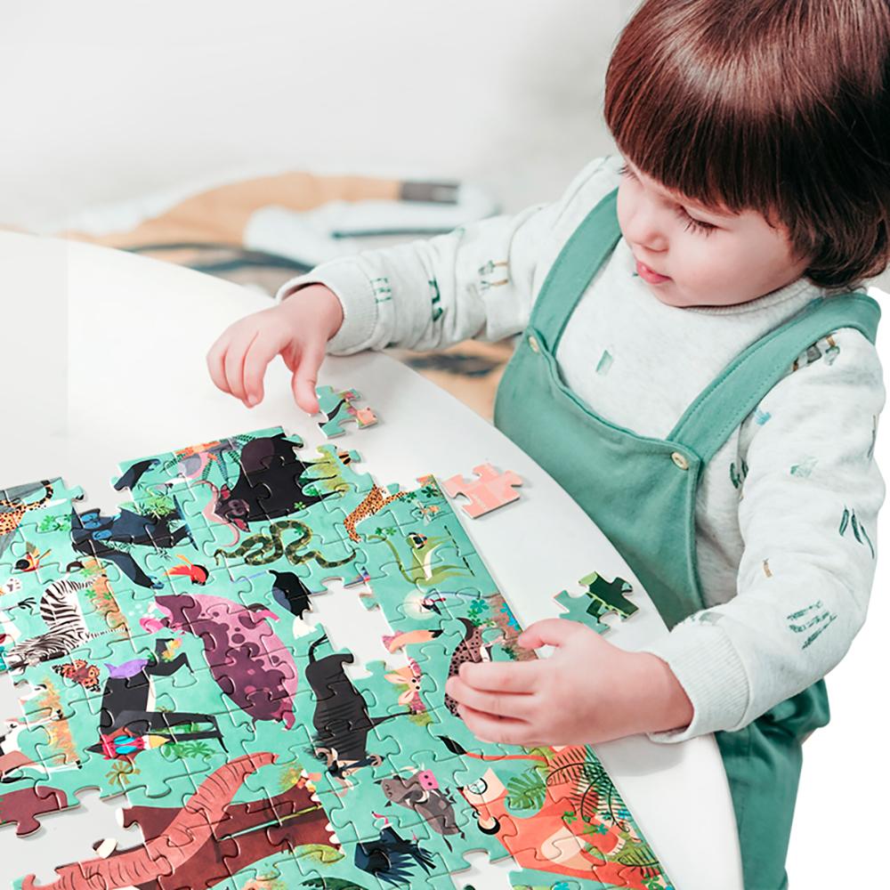 Nos encanta hacer puzles ya que los niños desarrollan su razonamiento lógico y su capacidad deductiva, aprenden a resolver problemas y se divierten mientras ven como va apareciendo la escena ante sus ojos, pieza a pieza. Además, está fabricado en cartón duro y es muy resistente, preparado para los pequeños de la casa.