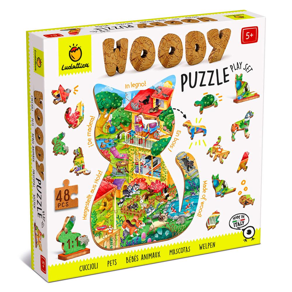 Puzzle de madera mascotas 48 piezas.