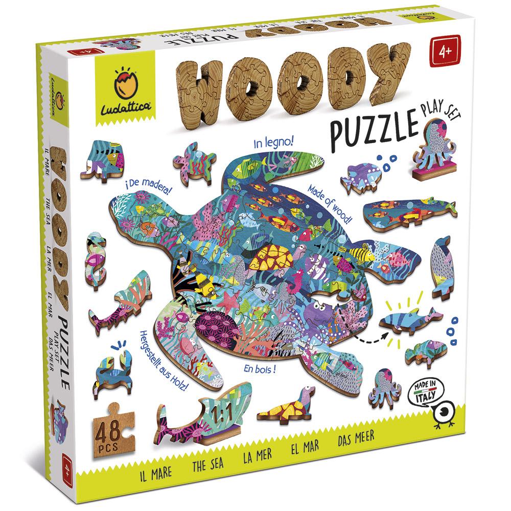 La escena de este puzle es muy especial y colorida: complétalo para disfrutar, pieza a pieza, de una vistosa escena marina, y coloca las piezas de animales de pie para seguir disfrutando del juego.