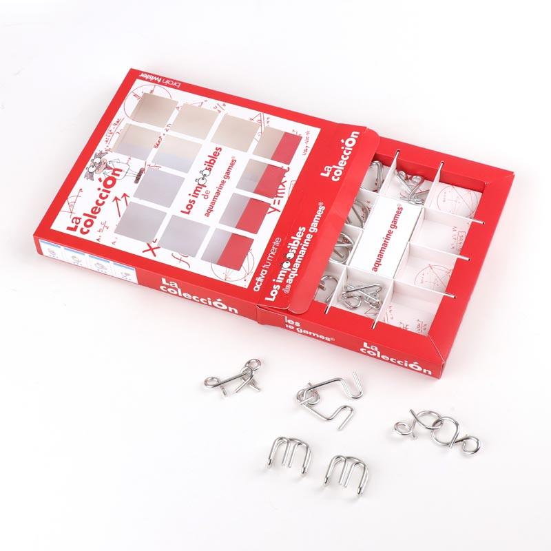 • Contiene 12 rompecabezas de diferentes niveles fabricados en metal.