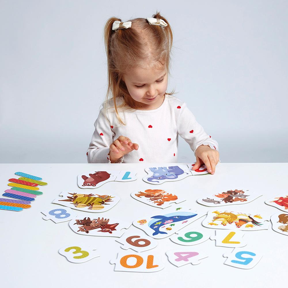 Este set es ideal para descubrir los números mientras te diviertes jugando. Podrás formar cada puzle poniendo a prueba tu destreza, conocer diferentes animales y aprender sus nombres. Además, te ayudará a reconocer los números y aprenderás a contar de forma divertida.