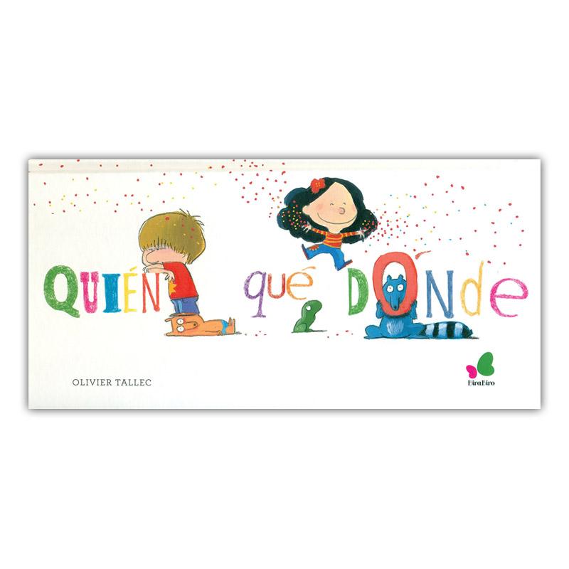 Quién Qué Dónde es el segundo título de esta colección creada por Olivier Tallec. En cada doble pàgina, una situación, unos personajes y una pregunta. A través de la observación y del juego, hay que identificar a los protagonistas de cada situación. Pero el libro los llevará más allá. ¿Qué ha pasado? ¿Por qué ha pasado? ¿Cómo se sienten los protagonistas? ¿Y los que no lo son? ¿Qué emociones experimentan?