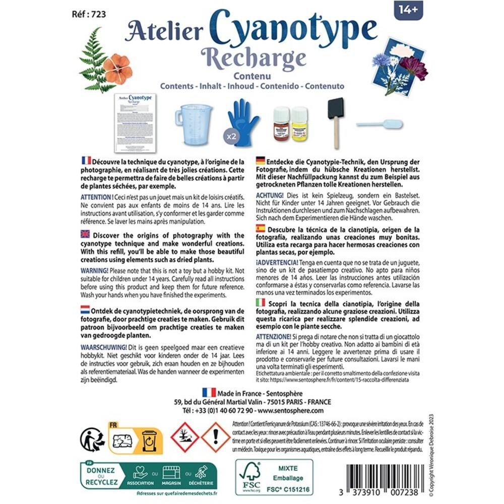 Contiene un bote de ferrocianuro de potasio, 1 bote de citrato férrico de amonio, 1 pipeta, 1 paletina de esponja, 1 vaso de precipitados, 2 guantes y manual de instrucciones.