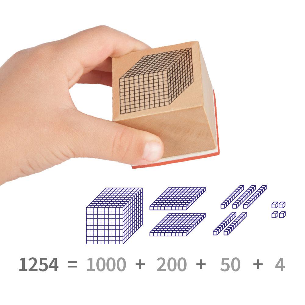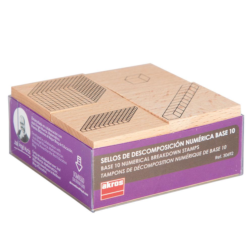 • Contiene: 4 sellos de madera maciza que representan la unidad, la decena, la centena y el millar.