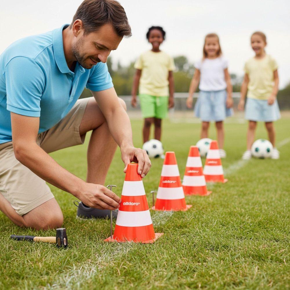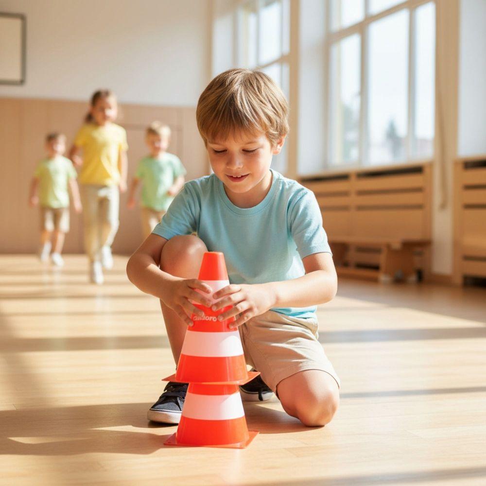 Este set de conos ayuda a desarrollar la coordinación motriz, la agilidad y el equilibrio de los alumnos, a la vez que fomenta la planificación de movimientos, el trabajo en equipo y la participación activa en juegos y actividades.