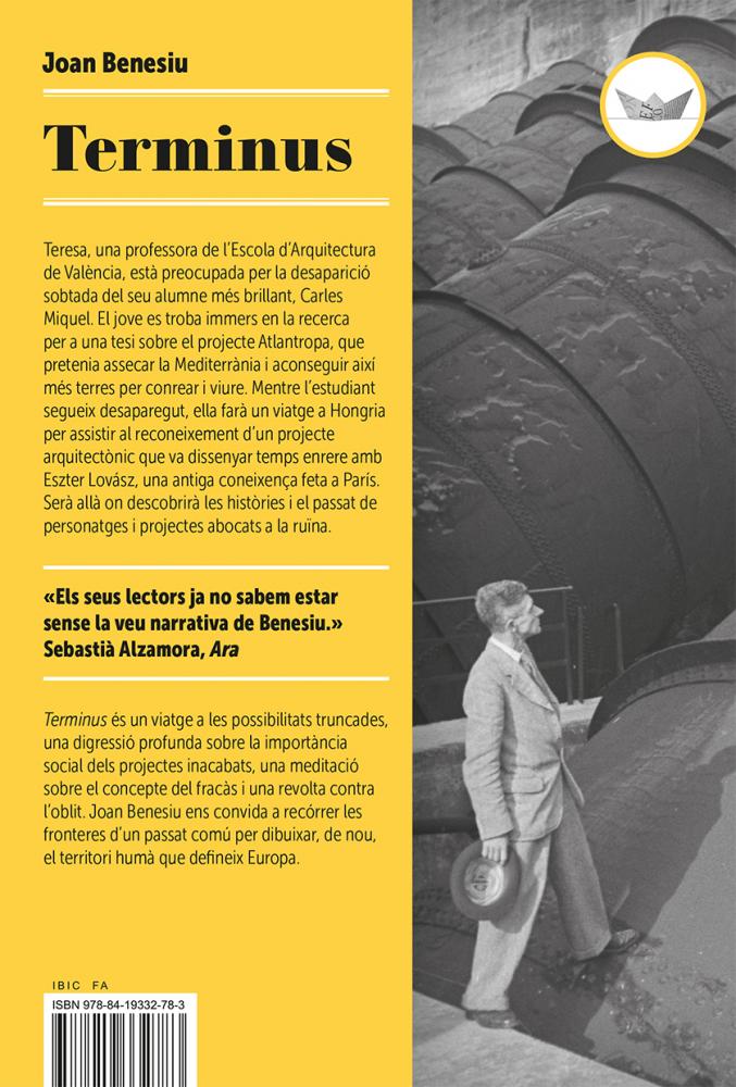 Teresa, una professora de l?Escola d?Arquitectura de València, està preocupada per la desaparició sobtada del seu alumne més brillant, Carles Miquel. El jove es troba immers en la recerca per a una tesi sobre el projecte Atlantropa, que pretenia assecar la Mediterrània i aconseguir així més terres per conrear i viure. Mentre l?estudiant segueix desaparegut, ella farà un viatge a Hongria per assistir al reconeixement d?un projecte arquitectònic que va dissenyar temps enrere amb Eszter Lovász, una antiga coneixença feta a París. Serà allà on descobrirà les històries i el passat de personatges i projectes abocats a la ruïna. Terminus és un viatge a les possibilitats truncades, una digressió profunda sobre la importància social dels projectes inacabats, una meditació sobre el concepte del fracàs i una revolta contra l?oblit. Joan Benesiu ens convida a recórrer les fronteres d?un passat comú per dibuixar, de nou, el territori humà que defineix Europa.