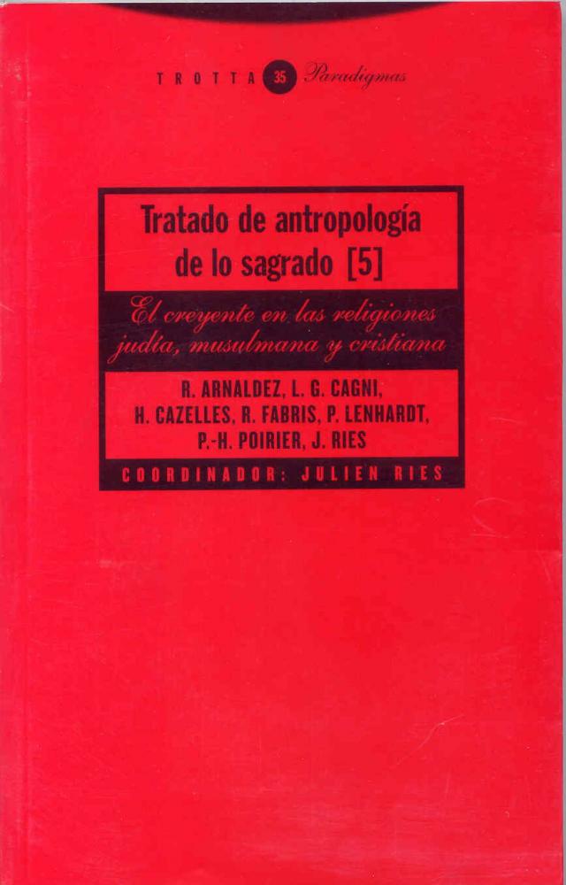 El volumen quinto del presente «Tratado» está dedicado a la especificidad de la antropología de lo sagrado en la experiencia bíblica judía, cristiana y musulmana. Comenzada con Abraham, la revelación bíblica significa una ruptura con la concepción anterior del « homo religiosus», una novedad y una singularidad: palabra divina, historia, fe y comportamiento del hombre se convierten en los elementos estructurales de su encuentro con Dios. Un encuentro basado en la fidelidad a la llamada de Dios y en la presencia divina en la historia de su pueblo y en la vida de sus fieles. Partiendo de la descripción de la creencia religiosa en las culturas mesopotámicas del Antiguo Oriente, el análisis se extiende a las relaciones entre hombre y Dios en el Antiguo Testamento y a la fe y la práctica religiosa en la vida cotidiana del judaísmo. El recorrido por el lugar y el sentido del «hombre nuevo» en los textos neotestamentarios conduce al estudio del nacimiento y desarrollo de una antropología cristiana en los siglos I y II d.C. Finalmente, el tratamiento de la psicología del creyente musulmán en su vinculación con la enseñanza revelada permite una nueva consideración de las relaciones entre la fe y las obras