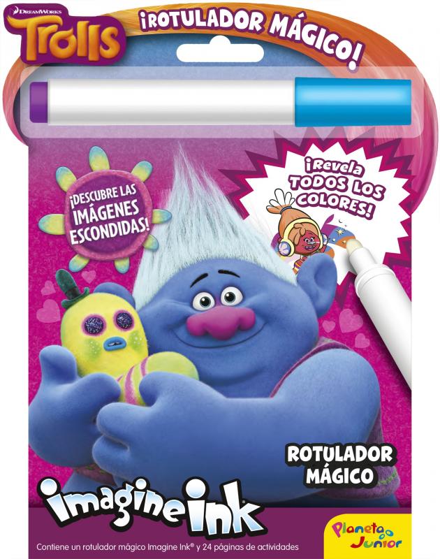 El rotulador ma?gico invisible IMAGINE INK® revela todos los colores. ¡Descubre ima?genes secretas en cada pa?gina y colorea el increi?ble mundo de Trolls!