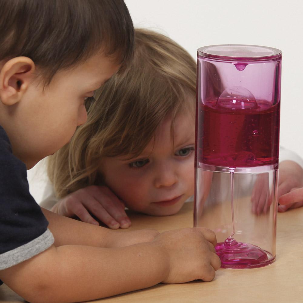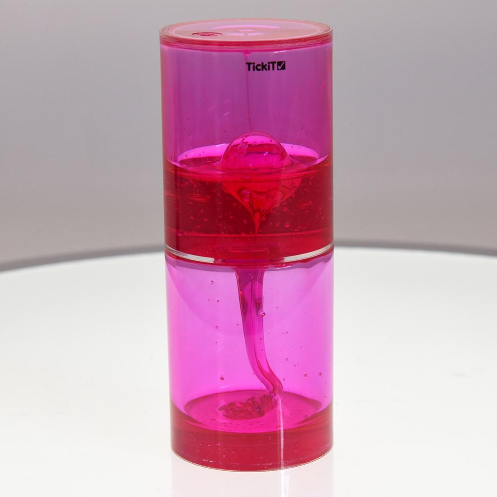 Simulando el funcionamiento de un reloj de arena, en su interior encontrarás una gelatina de color no tóxica que, al atravesar la abertura central, produce un movimiento lento y zigzagueante, ¡no podrás quitarle la vista de encima! Una vez ha terminado, solo tienes que darle la vuelta y seguir disfrutando.