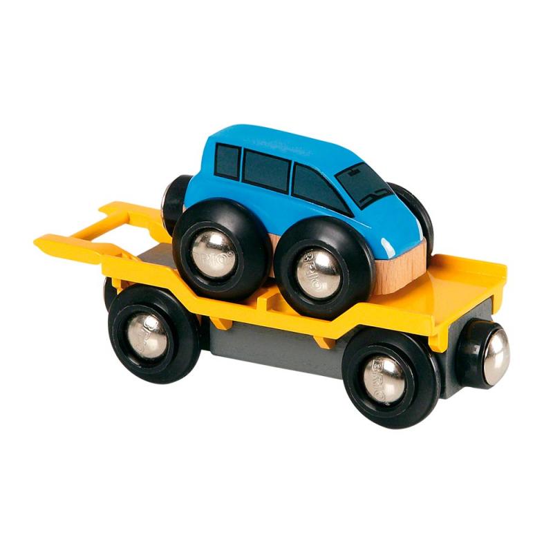 ¡Convierte tu circuito de trenes en el más completo y divertido! Con este vagón rampa de color amarillo podrás trasladar automóviles de un lugar a otro. El vagón cuenta con un imán, lo que permite acoplarlo a cualquier tren de la gama Brio. ¡Inclínalo para poder subir o bajar el coche rápidamente!