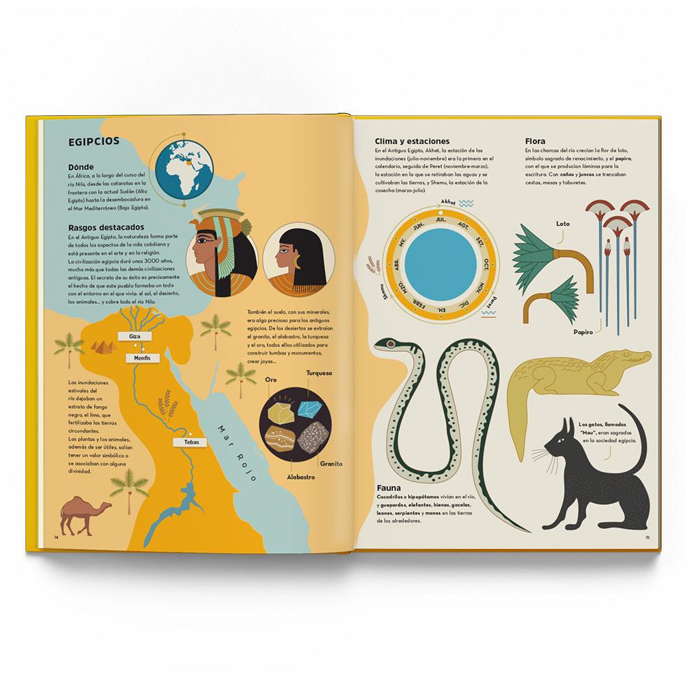 ¿A qué jugaban las niñas y los niños de hace miles de años? ¿Cómo vestían? ¿Dónde vivían y cuales eran sus comidas preferidas? En este libro encontrarás las respuestas a estas y otras preguntas concretas que alguna vez te has hecho. ¡Viajar en el tiempo no es nada fácil, pero puede ser muy divertido! Estas páginas contienen diagramas, ilustraciones y explicaciones breves y claras, que te permitirán echar un vistazo a vista de pájaro al pasado. De esta manera, conocerás los mitos, las divinidades y las estructuras sociales de los antiguos egipcios, romanos, griegos, fenicios y mayas. Pero también aspectos de su vida y de su cultura que a veces coinciden y otras se oponen a los nuestros, como su arquitectura, su relación con la naturaleza y sus gustos.